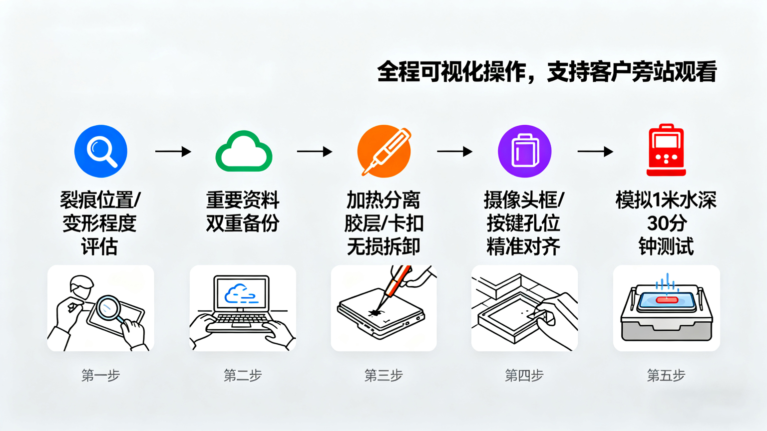 专业更换:清理残胶,安装新后盖/外壳,精准校准位置。