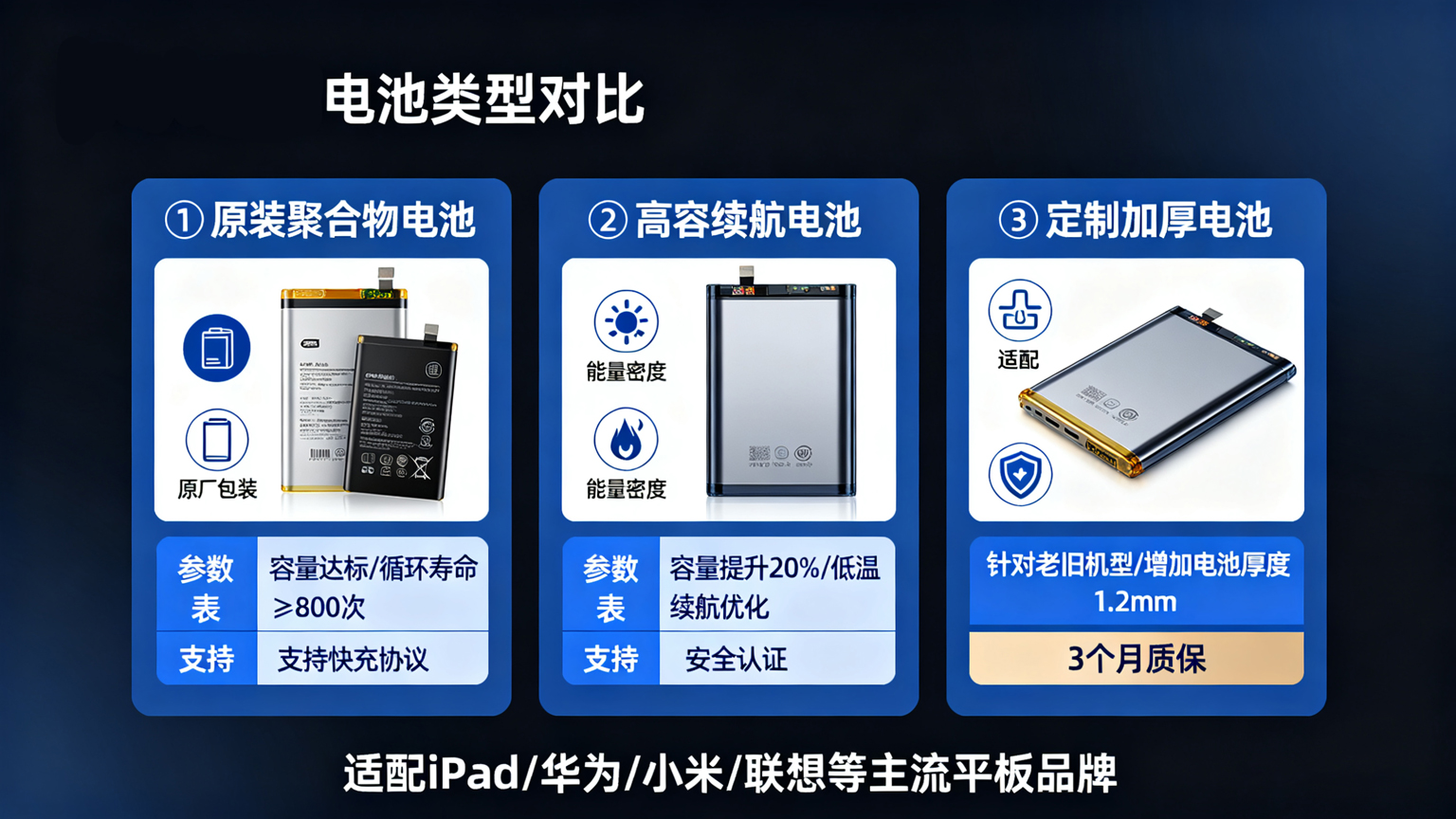 确认方案:根据平板型号推荐适配电池,明确价格与维修时间。
