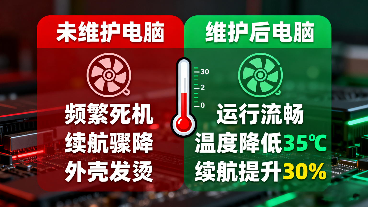 预防硬件损坏,延长设备寿命: 持续高温是电脑硬件的“隐形杀手”。定期散热维护能有效降低核心部件(如CPU、主板)的工作温度,显著延长电脑使用寿命,节约置换成本。